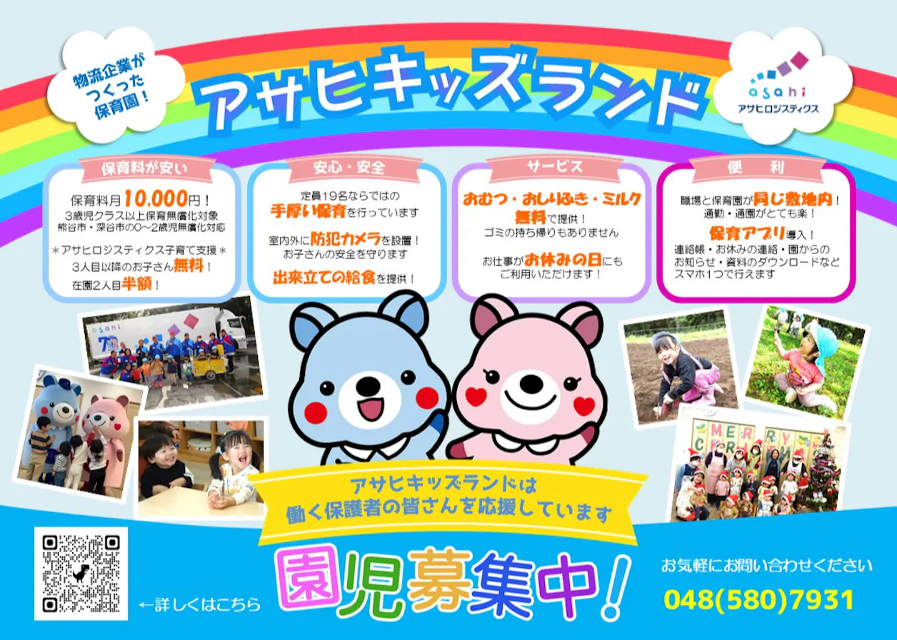 - 〒360-0107埼玉県熊谷市千代703-1アサヒキッズランド熊谷保育園