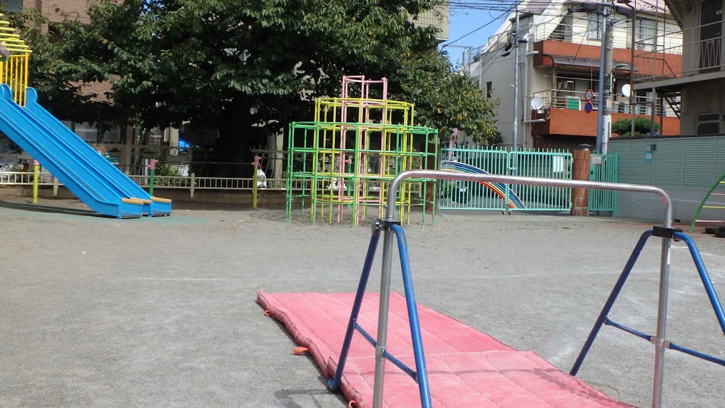 広い園庭・さまざまな遊具広い園庭で子ども達がのびのびと走り遊びます。 園庭にはアリやダンゴムシを観察、夏にはセミが鳴く桜の木があります。また、ジャングルや太鼓橋、滑り台、ブランコ、三輪車、ボール、しっかりと体を動かせる遊びが楽しめます。